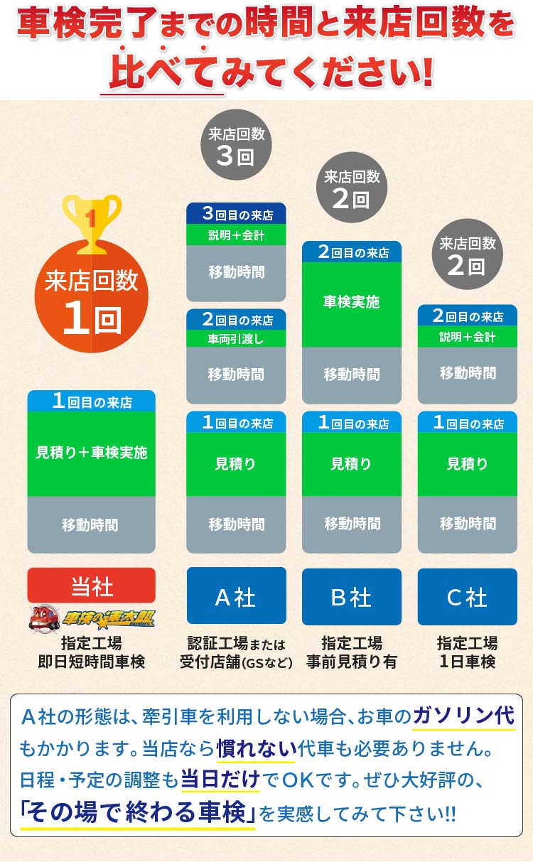 長年積み重ねてきた経験やノウハウによって、以前のように車検は何日も
