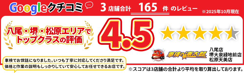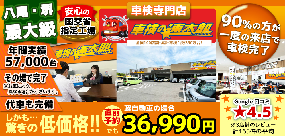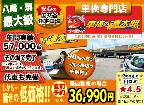 八尾 堺 羽曳野 松原で車検3.6万!年5万台